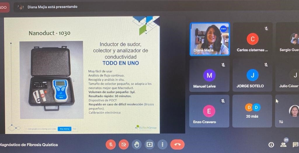 El pasado 9 de septiembre desde las 10:00 hrs. se desarrolló nuestro segundo evento ONLINE en lo que va del año, con cerca de 30 asistentes continuos, conversamos sobre las tendencias en el Diagnóstico de Fibrosis Quística, pruebas en sudor como Gold Standard de los sistemas Macroduct.
