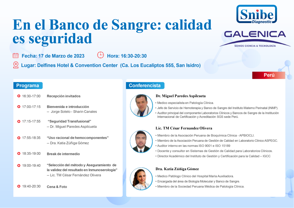 Este viernes 17 de marzo desde las 16:30 hrs. En el Hotel Delfines Hotel & Convention Center, se desarrollará nuestro Workshop en colaboración de nuestra representada Snibe Diagnostic, en esta ocasión, abordaremos distintos temas de interés para profesionales de Laboratorios Clínicos y Bancos de Sangre.